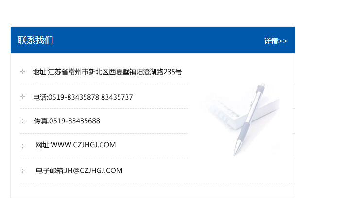 地址:常州市新北區友邦商務大廈1幢16、17層  電話:0519-85101652  傳真:0519-85112595  郵編:213022  網址:www_cz-jiayue_cn.dhmini.com  郵箱:xiajifengaa@163.com